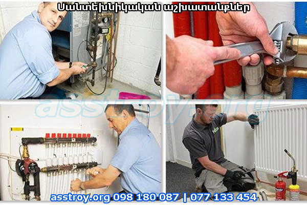 Սանտեխնիկա, սանտեխնիկական աշխատանքներ՝ Սերյոժա Խաչիկյան 098180087: Կատարում ենք ջրագծերի և գազախողովակների հետ կապված ցանկացած աշխատանքներ, սանտեխնիկայի տեղադրում, ունիտազի տեղադրում ( զուքարանակոնք — Ինստալյացիա), սանտեխնիկայի և ջեռուցման աշխատանքներ և այլն: